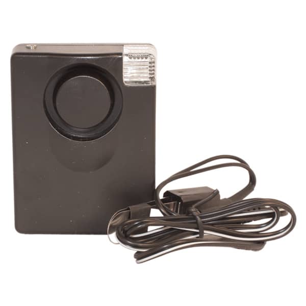 The new 3 IN 1 130db PERSONAL ALARM WITH LIGHT is the only alarm that can act as a flashlight, personal alarm, laptop computer alarm, and window or door alarm. It has 2 attachments. The first is a standard smart hook that can be used on your belt loop or purse. Second is the window or door alarm attachment that can be used on a window, door, or as a laptop alarm. When the alarm is activated there is a strobe light to attract attention. The unit also has a button for the flashlight function. It runs off of one 9 volt battery not included.