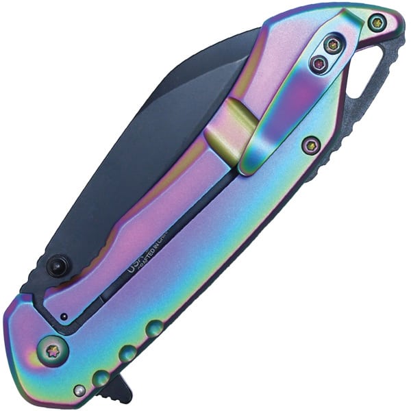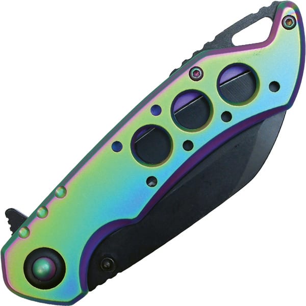 Assisted Open Folding Pocket Knife, Rainbow Handle w/ Black Accents
