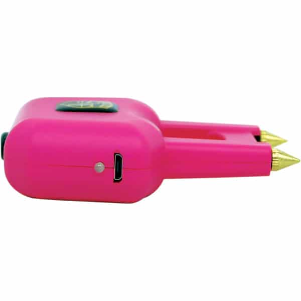 The Spike stun gun has two sharp spikes. It was designed this way so it could double as a striking self defense tool. You would aim for the eyes or throat. The SPIKE stun gun comes with a rubberized coating, providing a comfortable non-slip grip. Resting discreetly in your hand, the triggering button activated by your palm. The Spike discharges loudly, easily able to dissuade a confrontation before it starts.